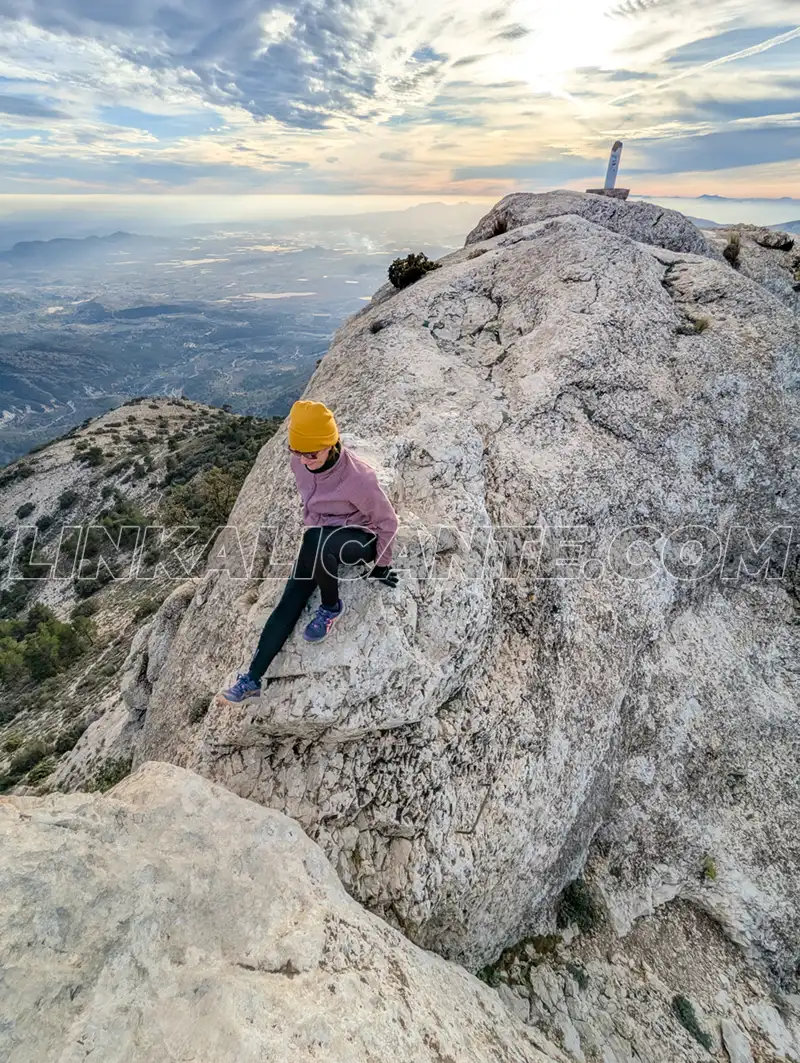 El pico del Maigmó (1.296 m. según IGN), es la máxima elevación de la sierra del mismo nombre y una de las cumbres más altas, emblemáticas y queridas de la provincia de Alicante.