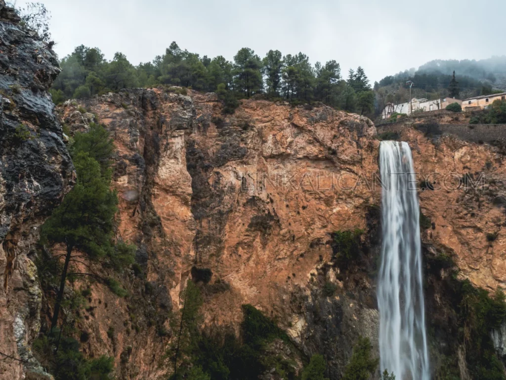 Al igual que sucede en el Pantano de Tibi, esta no es una cascada de origen natural, sino que se produce cuando las aguas del Pantano de Elche se desbordan por encima de la presa del embalse. Después de lluvias fuertes y con la consiguiente crecida del río Vinalopó, este espectacular salto de agua luce especialmente bonito.