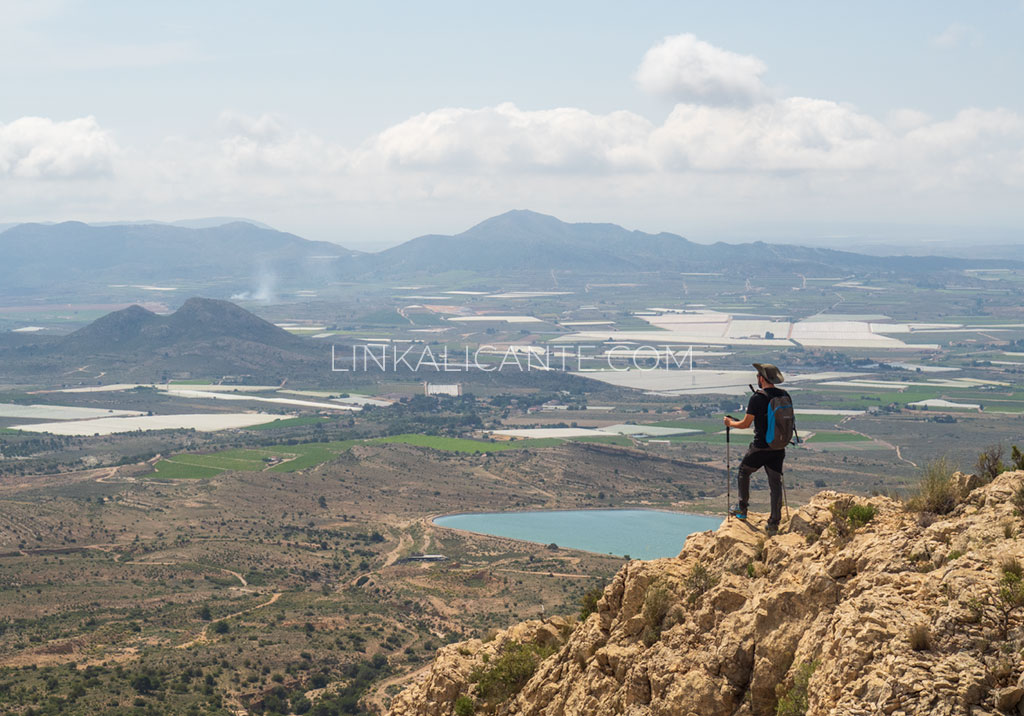 Desde la cumbre disfrutamos de unas vistas espectaculares hacia el este y el sur, que se prolongan hasta la Bahía de Alicante, el Cabo de Santa Pola y más allá. En mi caso, no las pude contemplar en esta ocasión, al cubrirse la montaña por la nubosidad.